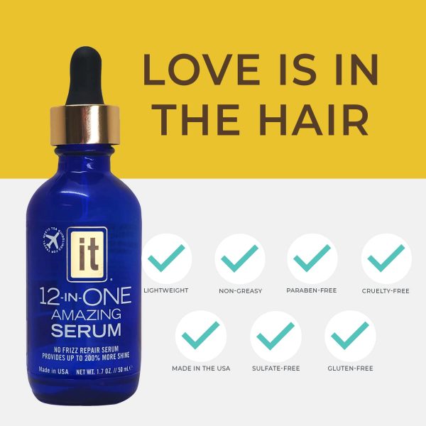 Regular use of the It Hair Care 12-in-One Serum can make hair more manageable and restore the natural body. Lightweight, non-greasy, and paraben, gluten and sulfate-free