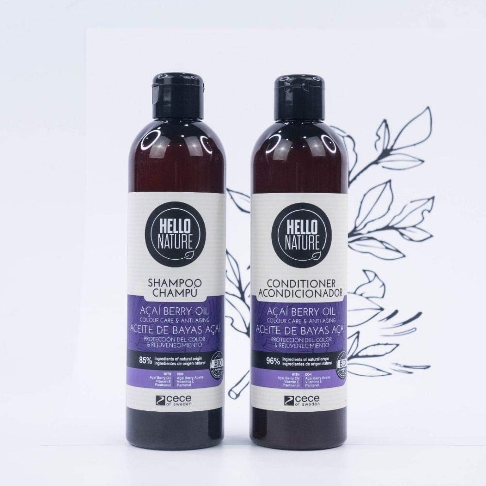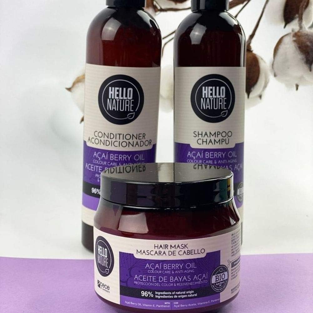 Hello Nature Acai Berry Oil shampoo Color care and anti-aging formula gently cleanse the hair and scalp. It provides intense color care, restores elasticity, and gives the hair a youthful appearance.