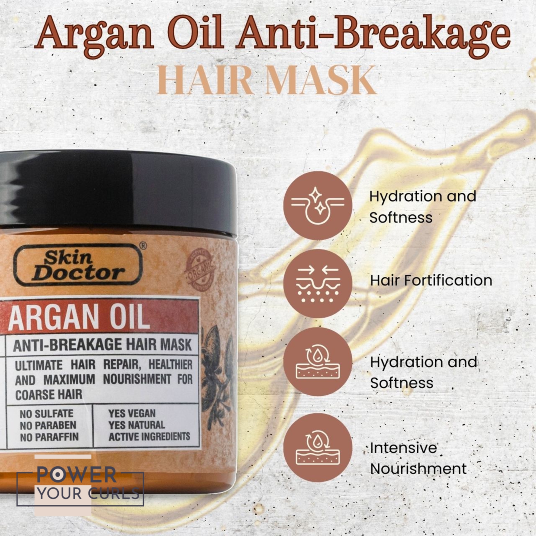 Pamper your hair with our Argan Oil Anti-Breakage Hair Mask, a sulfate-free solution that caters to all hair types. This hair mask is designed to provide the utmost care and nourishment to your hair, offering extra hydration that leaves your locks feeling rejuvenated and revitalized. In addition to its hydrating properties, this hair mask also offers anti-aging benefits to help maintain the youthful vitality of your hair. Available in a generous 500ml size, this mask is the perfect addition to your hair care routine, ensuring that your hair receives the attention it deserves