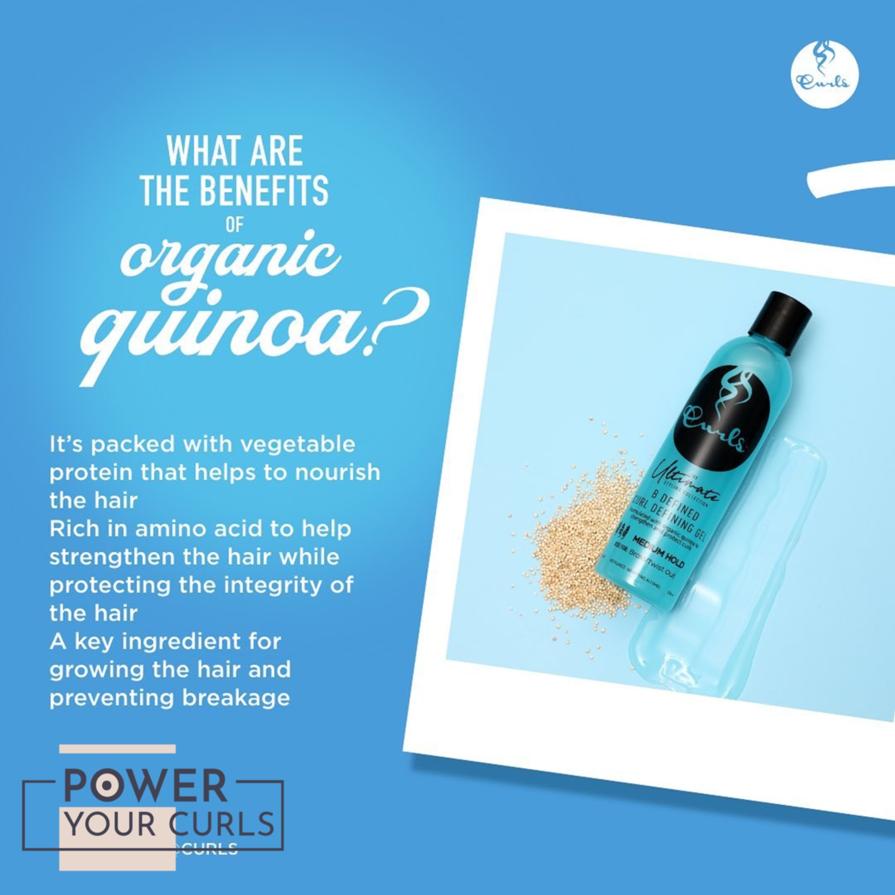 High-performing botanical gel, formulated with organic Quinoa to strengthen and protect curls. This medium holds natural hair gel and can be used for braid and twist-out styles.