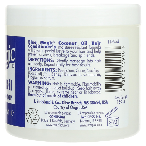 Blue Magic Coconut Oil Hair Conditioner’s moisture-resistant formula will give a special luster to your hair and help prevent dryness, breakage, and split ends.