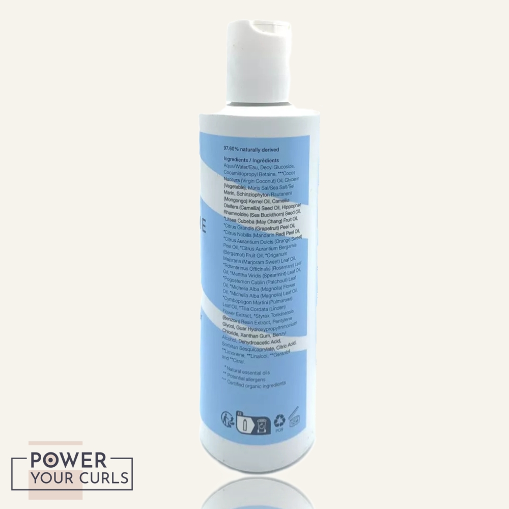 Aqua/Water/Eau, Decyl Glucoside, Cocamidopropyl Betaine, ***Cocos Nucifera (Virgin Coconut) Oil, Glycerin (Vegetable), Maris Sal/Sea Salt/Sel Marin, Schinziophyton Rautanenii (Mongongo) Kernel Oil, Camellia Oleifera (Camellia) Seed Oil, Hippophae Rhamnoides (Sea Buckthorn) Seed Oil, *Litsea Cubeba (May Chang) Fruit Oil, *Citrus Grandis (Grapefruit) Peel Oil, *Citrus Nobilis (Mandarin Red) Peel Oil, *Citrus Aurantium Dulcis (Orange Sweet) Peel Oil, *Citrus Aurantium Bergamia (Bergamot) Fruit Oil, *Origanum Majorana (Marjoram Sweet) Leaf Oil, *Rosmarinus Officinalis (Rosemary) Leaf Oil, *Mentha Viridis (Spearmint) Leaf Oil, *Pogostemon Cablin (Patchouli) Leaf Oil, *Michelia Alba (Magnolia) Flower Oil, *Michelia Alba (Magnolia) Leaf Oil, *Cymbopogon Martini (Palmarosa) Leaf Oil, *Tilia Cordata (Linden) Flower Extract, *Styrax Tonkinensis (Benzoin) Resin Extract, Pentylene Glycol, Guar Hydroxypropyltrimonium Chloride, Xanthan Gum, Benzyl Alcohol, Dehydroacetic Acid, Sorbitan Sesquicaprylate, Citric Acid, **Limonene, **Linalool, **Geraniol, **Citral.