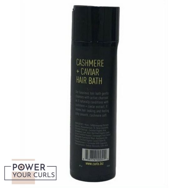 Curls luxurious hair bath gently cleanses with active charcoal as it naturally conditions with cashmere & caviar extract.