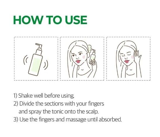 1.) Shake well before using. Divide the sections with your fingers and spray the tonic onto the scalp.