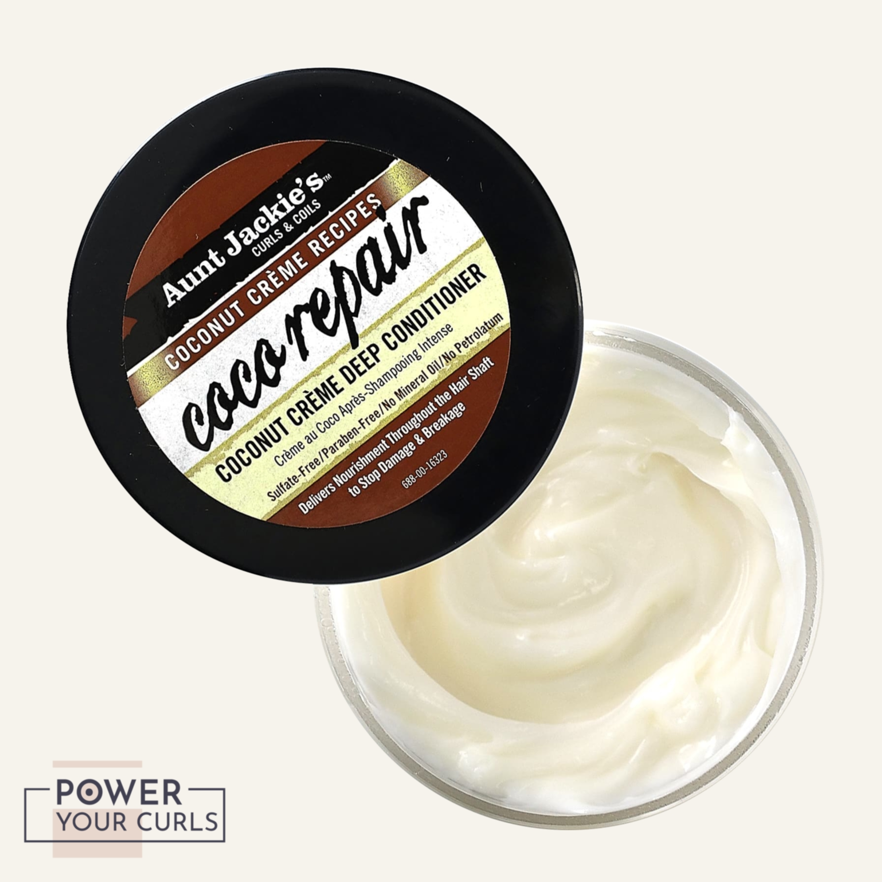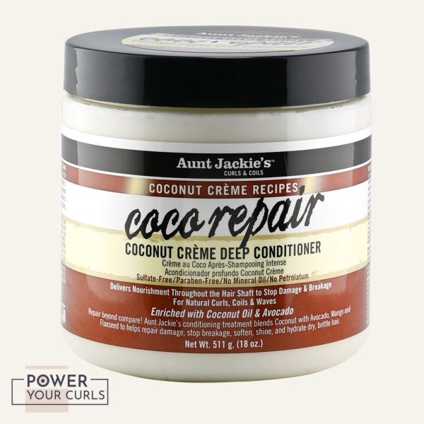 Infused with carrier oils that pull nutrients into the hair shaft, Aunt Jackie’s Coco Repair recipe helps to improve the look and feel of chronically dry, fragile tresses. Whether damage is from over-processing with chemical straighteners or color, heat styling, braiding, or certain environmental conditions, Coco Repair is an effective remedy to help return hair to a vibrant, softer state. Especially good for 2c-4c textures.