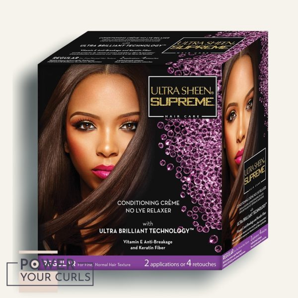 Ultra Sheen Supreme Conditioning Créme Relaxer with Ultra Brilliant Technology leaves hair perfectly relaxed with epic shine. This superior quality formula provides the ultimate conditioning and protection for beautiful hair. Antioxidant Vitamin E helps smooth and protect while SIlk Proteins help improve elasticity and add natural looking shine. The results are silky smooth, healthy looking hair.