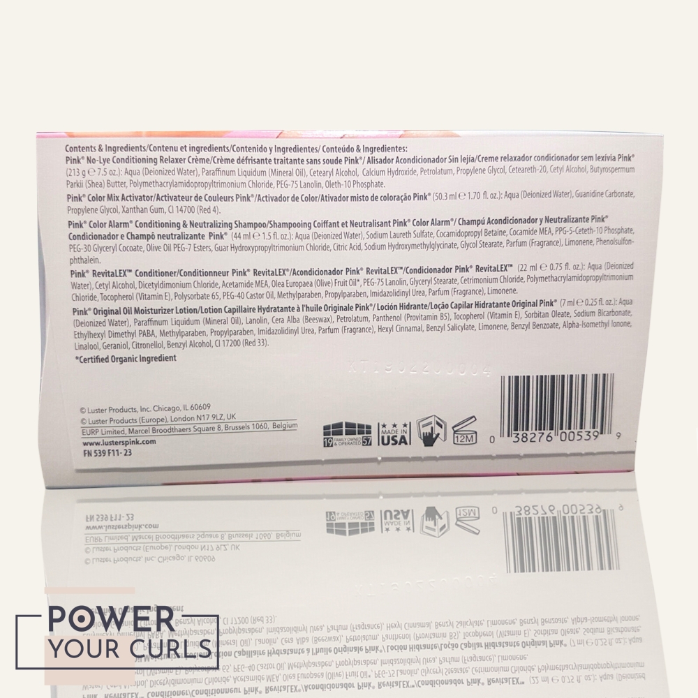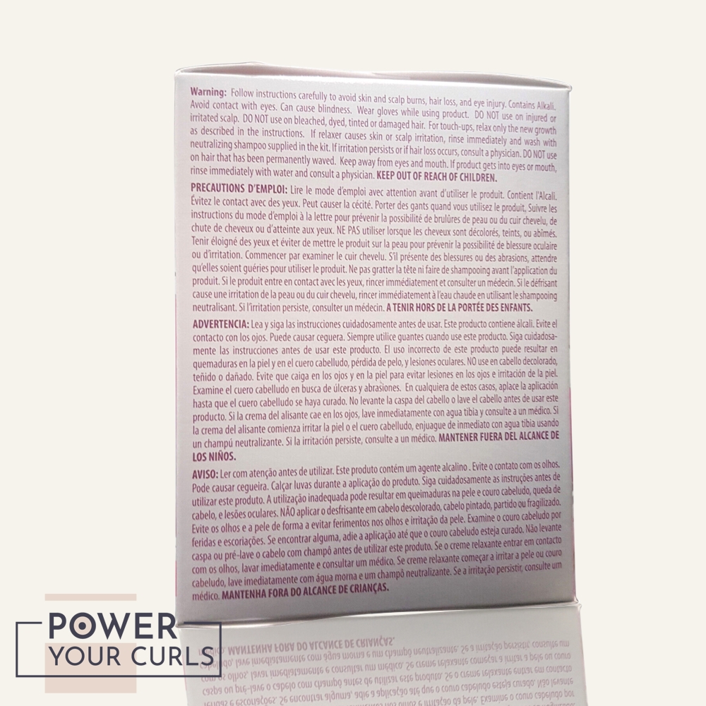 For use on virgin hair that has not been bleached, permanently-colored, or permanently-waved. For New Growth application, purchase Pink® No-Lye Conditioning Relaxer – One (1) Retouch Application Kit. See details and carefully follow the instructions on the sheet inside the kit box.