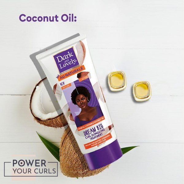 Discover Dream Big Curl Elongating Treatment. Dark and Lovely’s 1st Curl Elongating Treatment with 5% Vegetal Cysteine and Coconut Oil. Developed with Dark and Lovely’s Patented System and Co-developed with African Hairstylists. Tested on 500 African Women (Curls Type 4A to 4C).
