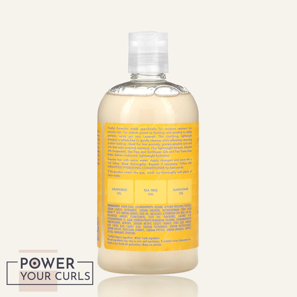 This clarifying, lightweight hair shampoo is ideal for low porosity, protein-sensitive curls and coils that resist essential moisture