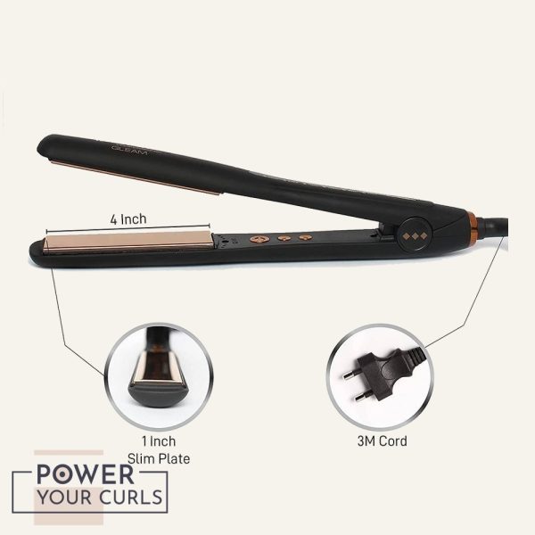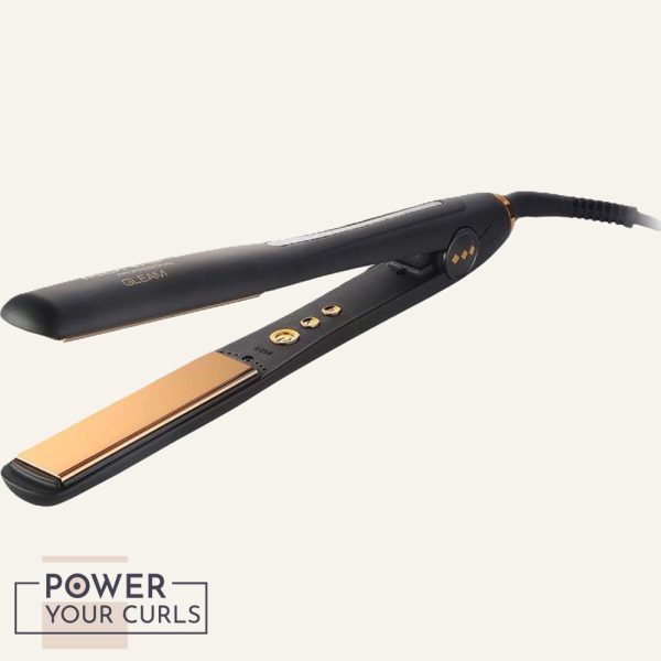 The gleam straightener has longer plates for styling longer, thicker hair. Its Rose-gold plates emit gentle, far-infrared heat that eliminates frizz and gently straightens the hair without damaging it.