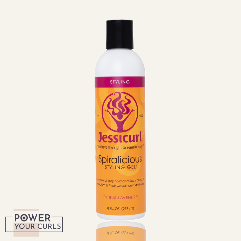 Spiralicious Styling Gel is our stronger hold gel for medium and thick (coarse) textured curls. It provides long lasting hold and definition and is glycerin and protein free. No ramen-noodle curls here! One of the best parts about this gel is the frizz control.