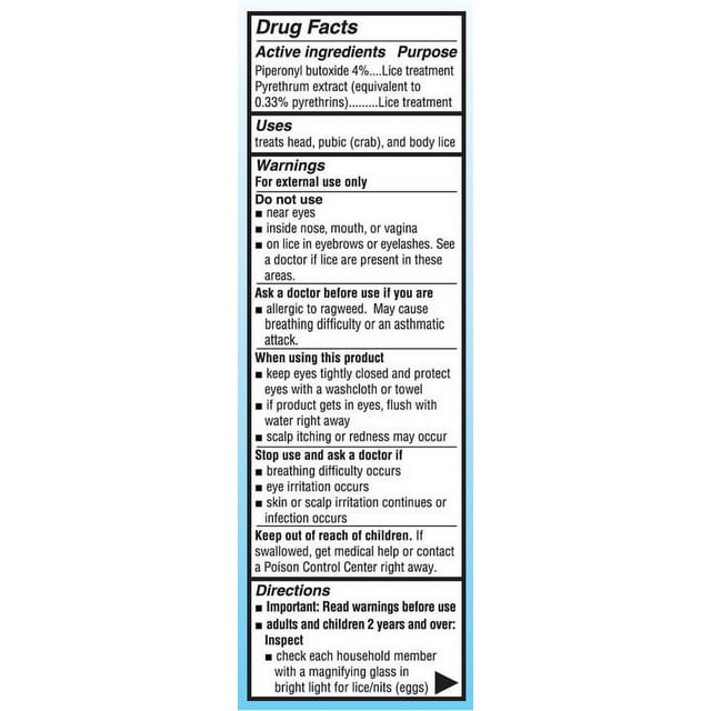 Apply thoroughly to dry hair or other affected areas. For head lice, first, apply behind the ears and to the back of the neck. Allow product to remain for 10 minutes, but not longer. Use warm water to form a lather, shampoo, then thoroughly rinse. For head lice, towel dry hair and comb out tangle
