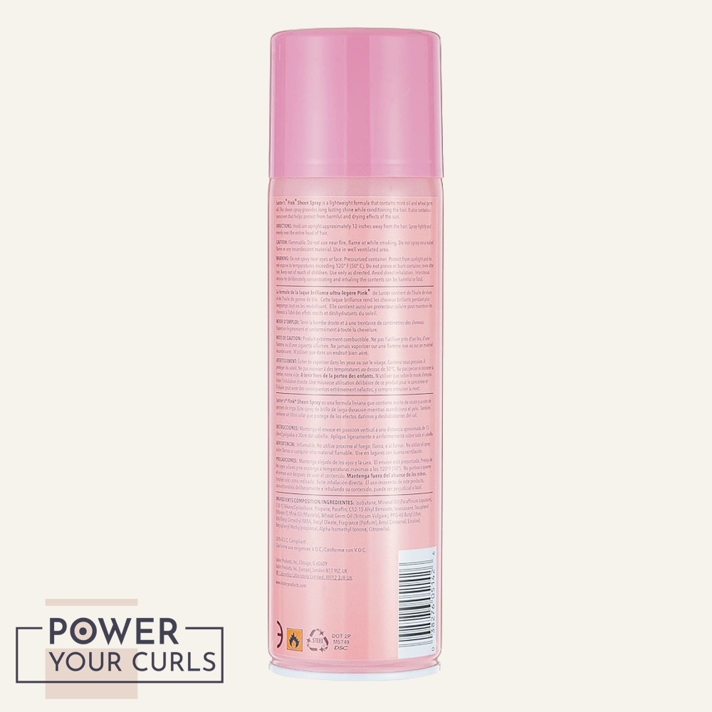 Pink Sheen Spray is a lightweight conditioning formulation that fights frizz while providing beautiful long-lasting shine for natural hair.