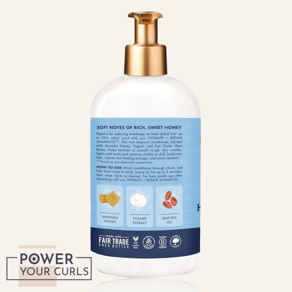 Work conditioner through hair from root to ends. Leave on for 3 minutes, then rinse. Style as desired. For best results use after cleansing with Shea Moisture Hydrate + Repair Shampoo.