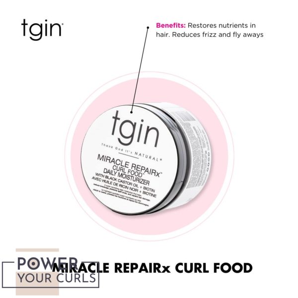 Restoring nutrients into the hair, the Miracle RepaiRx Curl Food is the herbal solution to dry, damaged hair. This daily moisturizer uses black castor oil and biotin to add healing hydration into your styling routine, controlling dryness and frizz. Free from parabens, sulfates, petrolatum, lanolin, artificial colors, or animal testing.