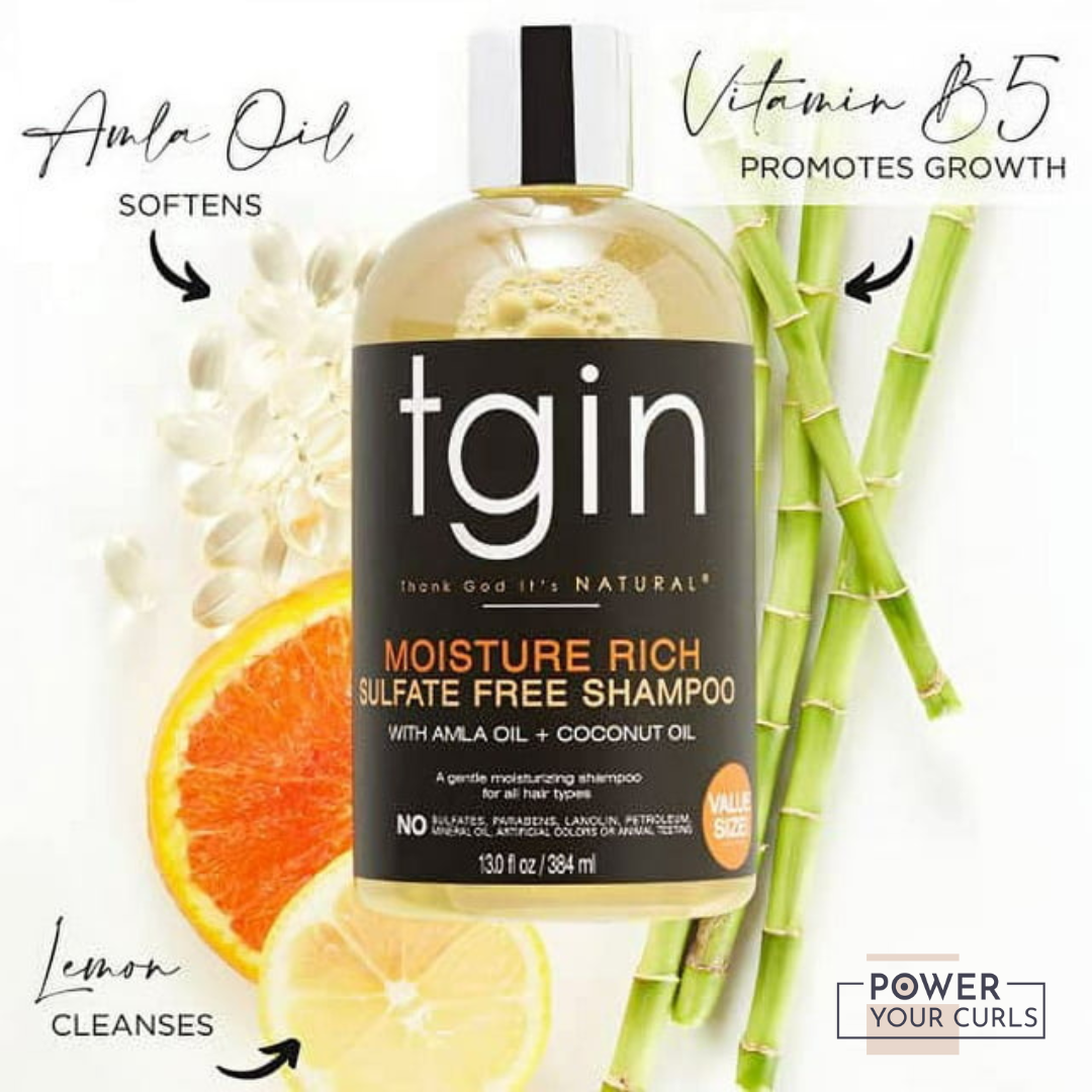 Experience amazing results with tgin Moisture Rich Sulfate Free Shampoo for natural hair. This unique formula is enriched with aloe vera to gently cleanse your hair without stripping your strands of their natural oils, and Pro Vitamin B5 to reduce breakage and increase moisture retention. The result is healthy hair that is left feeling soft, smooth and moisturized.
