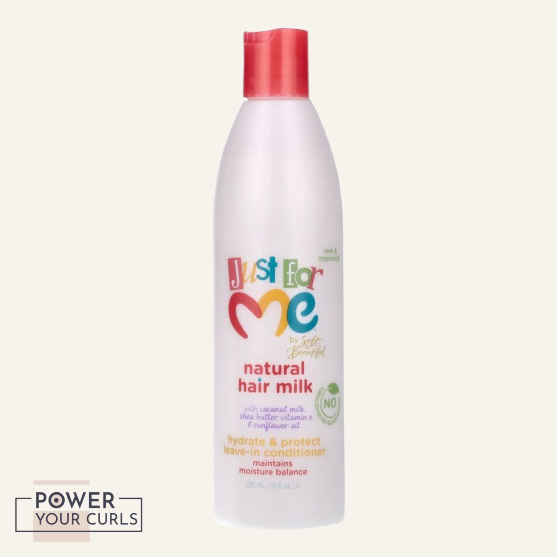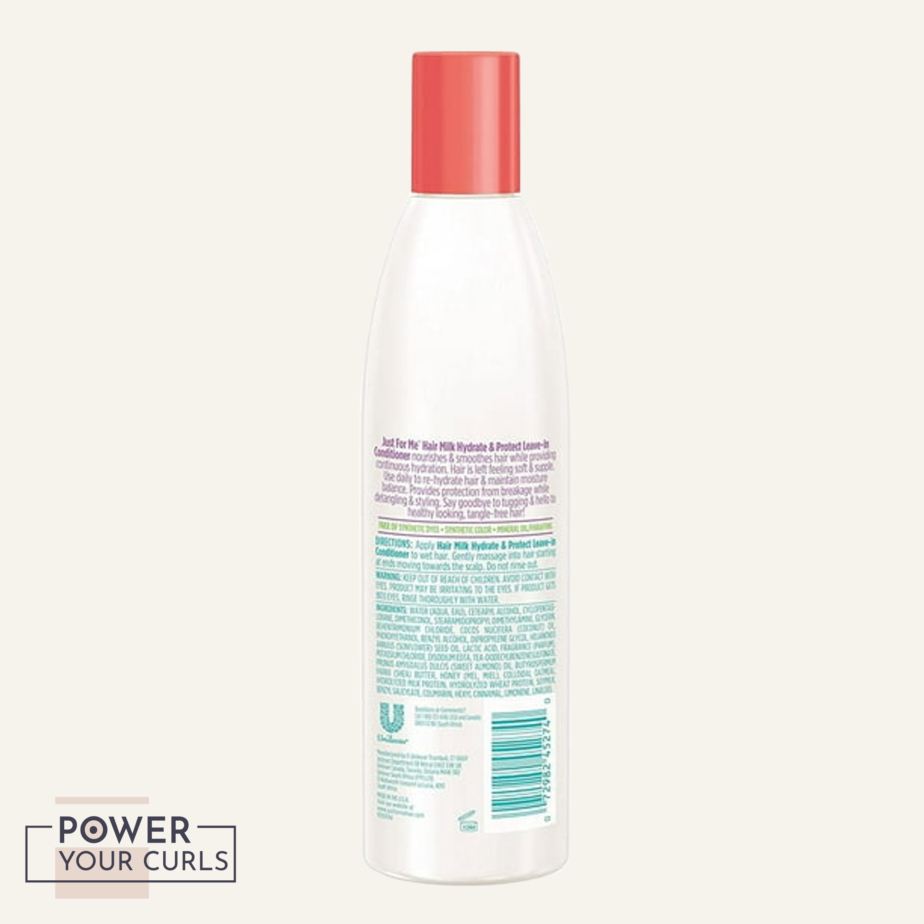Just For Me® Natural Hair Milk Hydrate & Protect Leave-In Conditioner nourishes & smoothes hair while providing continuous hydration. Hair is left feeling soft & supple. Use daily to rehydrate hair & maintain moisture balance.