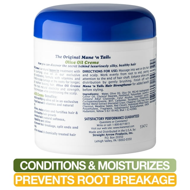 Mane ‘n Tail Olive Oil Creme is a natural leave-in treatment with essential nutrifying olive oil in our exclusive hydro-gel conditioning formula with vitamins and natural herbs to stop damage at the roots for longer, stronger healthier-looking hair. Olive Ole Creme rejuvenates hair’s natural elasticity and strength, and restores lost moisture while conditioning the scalp.