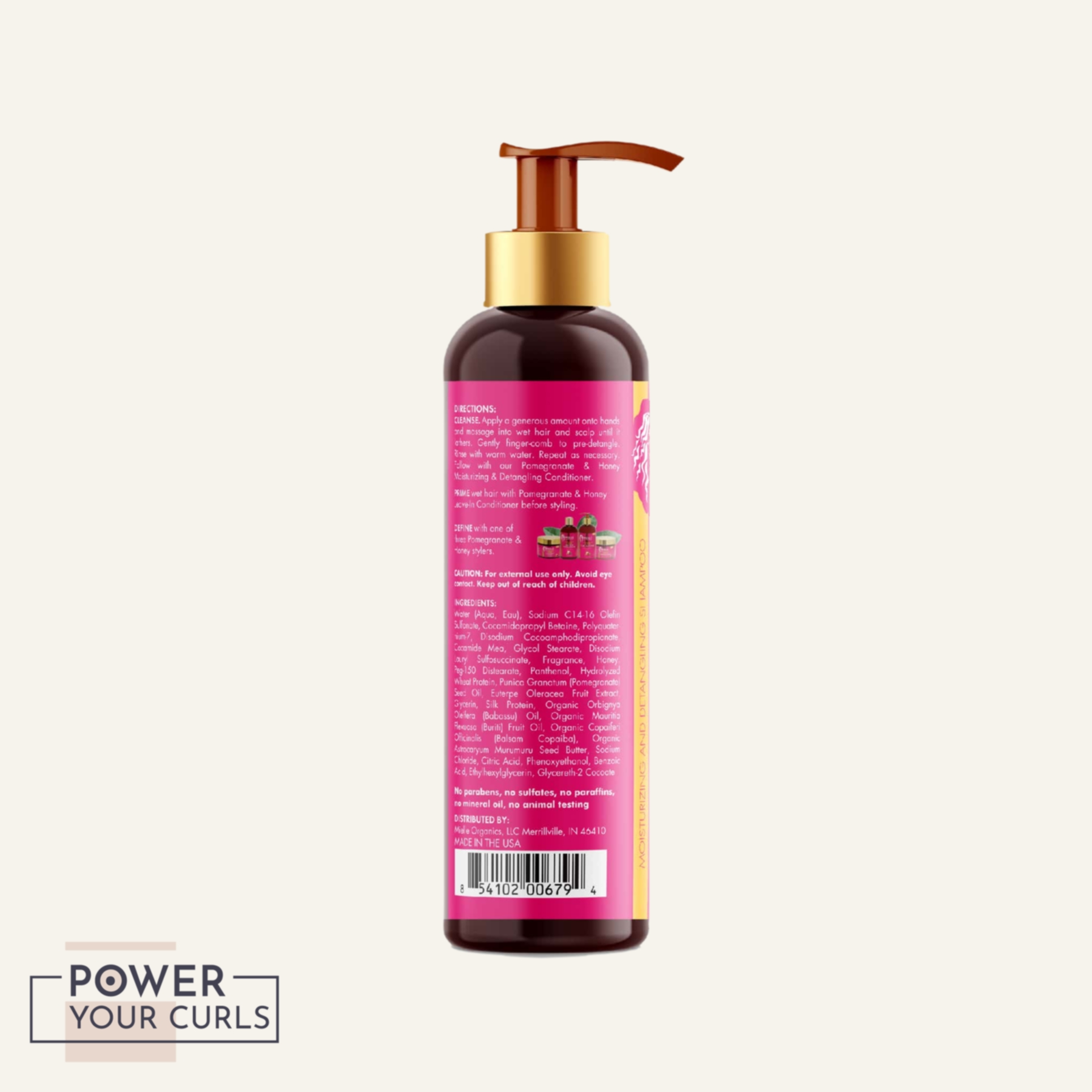 Apply a generous amount onto hands and massage into wet hair and scalp until it lathers. Gently finger-comb to pre-detangle. Rinse with warm water. Repeat as necessary. Follow with our Pomegranate & Honey Moisturizing and Detangling Conditioner.