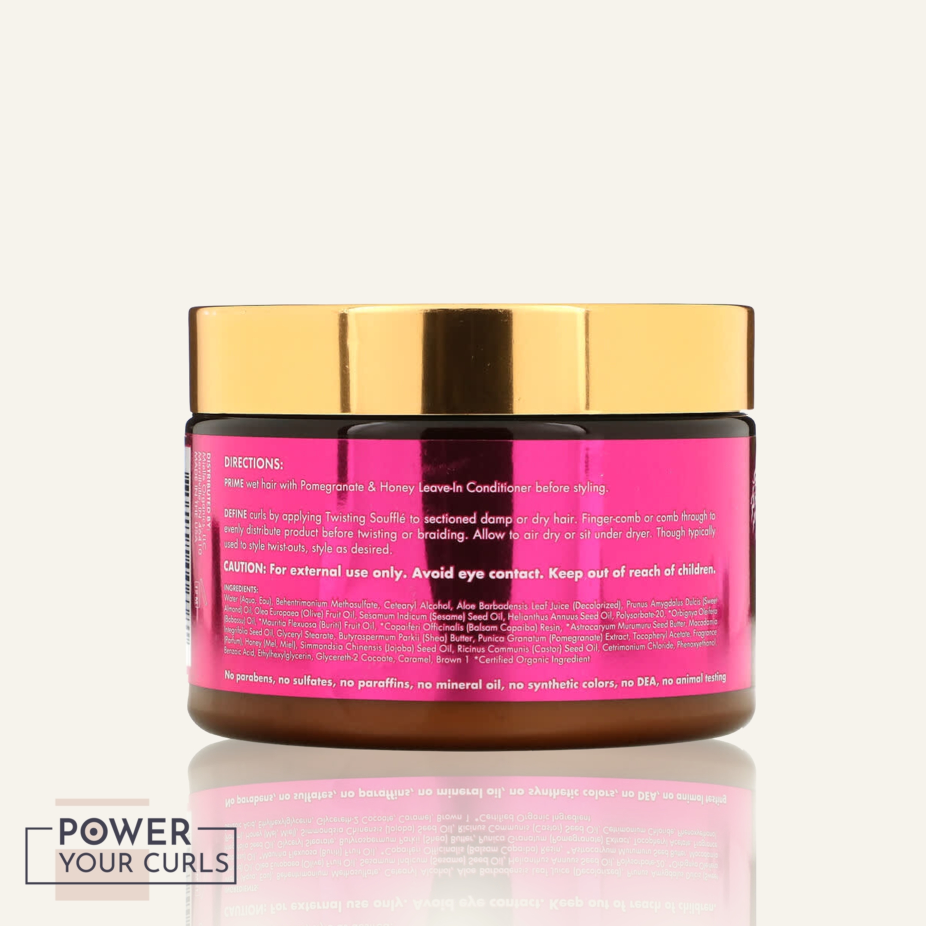 Be good to yourself. Bring home Mielle’s Pomegranate & Honey Twisting Souffle for your next twist-out, braid out, or bantu knots, and enjoy intense hydration and exceptional shine! Made with the purest of ingredients including pomegranate extract, honey, and essential oils, this deliciously whipped formula provides the perfect combination of nourishment and definition that you need for beautiful, healthy styling.