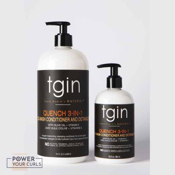 Kiss dry hair goodbye and say hello to soft, beautiful moisturized curls with tgin Quench 3-in-1 Co-Wash Conditioner & Detangler. Infused with shea butter, and sweet almond oil, this lightweight formula has the perfect combination of moisture and antioxidants, which helps to improve manageability, fight frizz, and transform dry brittle strands into soft, smooth and healthy hair.