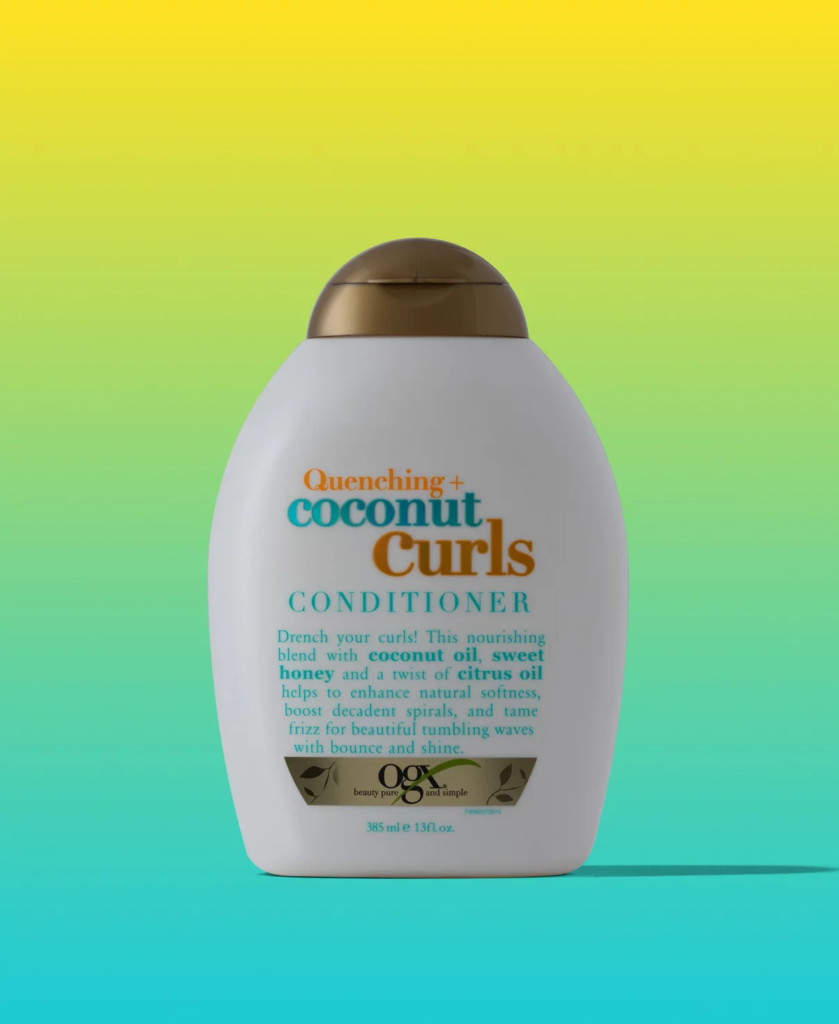 Boost your curls with OGX Quenching + Coconut Curls Conditioner. Ideal for medium to coarse-textured hair, this curl-enhancing conditioner helps detangle and define tumbling waves full of bounce and shine. Designed to enhance natural softness, the curly hair conditioner also tames frizz as it quenches and hydrates your decadent spirals, leaving them looking smooth & bouncy. The nourishing blend contains coconut oil, which helps add luster and softness to hair, citrus oil to help clarify and reveal shine, and sweet honey, which has humectant and emollient properties that make it a great hair moisturizer. Plus, the coconut water, white orange & tonka bean scent makes conditioning your hair an all-around sensory experience that leaves locks with an irresistibly good smell. Paraben-free with sulfate-free surfactants, this nourishing coconut conditioner represents beauty, pure and simple. For a full quenching curly hair care routine, pair with OGX Coconut Curls Shampoo & Hair Butter