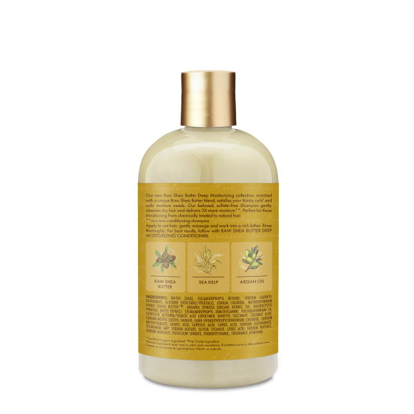 How to use it: Apply to wet hair, massage and work into a rich lather. Rinse thoroughly. For best results, follow with Raw Shea Butter Deep Moisturizing Conditioner.