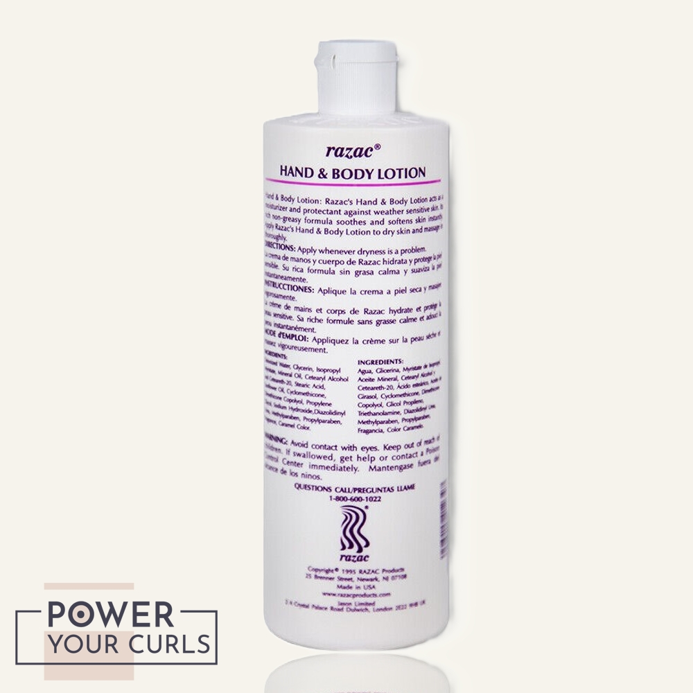 Razac’s Hand & Body Lotion acts as a moisturizer and protectant against weather-sensitive skin. A rich non-greasy formula soothes and softens skin instantly.