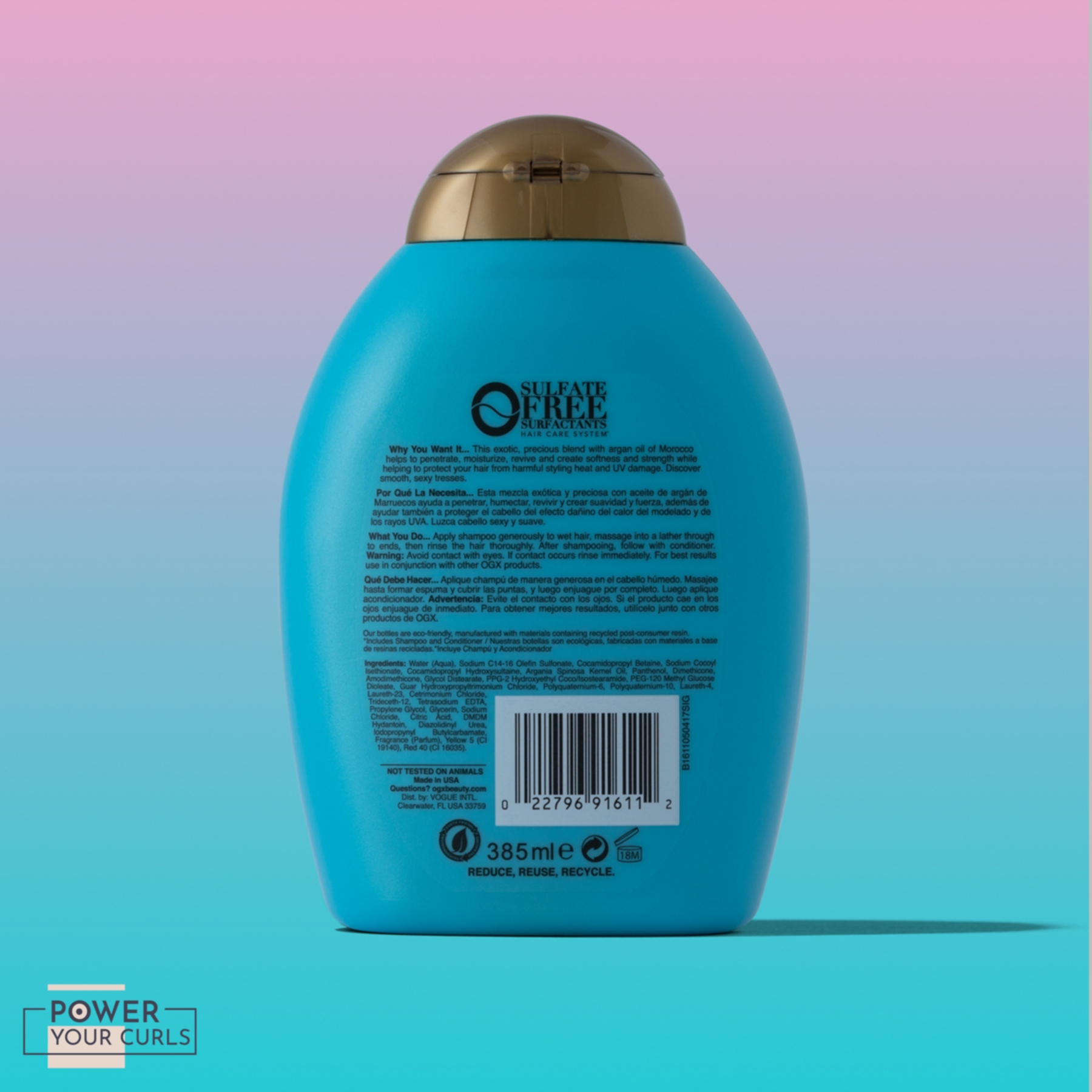 Lather up with this precious blend containing argan oil of Morocco, to help restore and strengthen your locks to silky perfection. It will help protect your hair from styling, without any sulfates or parabens.