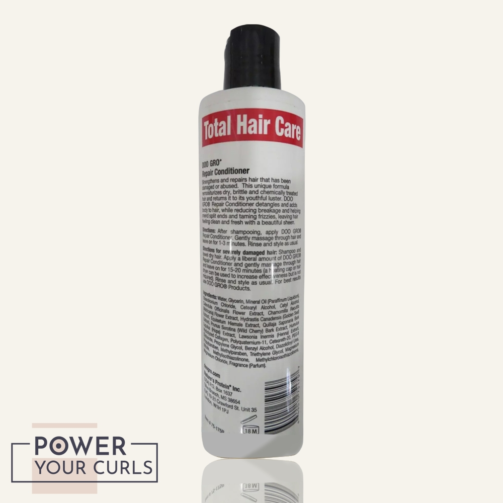 Strengthens and repairs hair that has been damaged or abused. This unique formula remoisturizes dry, brittle and chemically treated hair and returns it to its youthful luster. DOO GRO® Repair Conditioner detangles and adds body to hair, while reducing breakage and helping mend split ends and taming frizzies, leaving hair feeling clean and fresh with a beautiful sheen.