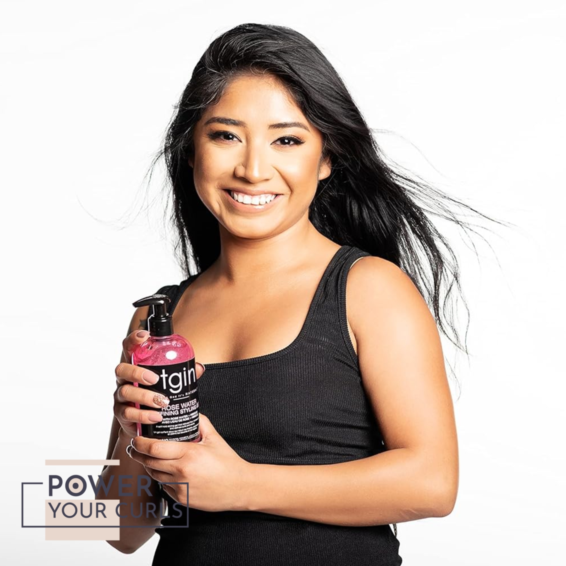 Wash hair with Rose Water Sulfate Free Hydrating Shampoo to cleanse the scalp and remove excess buildup. Follow with Rose Water Frizz Free Hydrating Conditioner. Rinse out. Apply a small amount of Rose Water Smoothing Leave in Conditioner to wet hair, followed by Rose Water Defining Styling Gel and style as usual.
