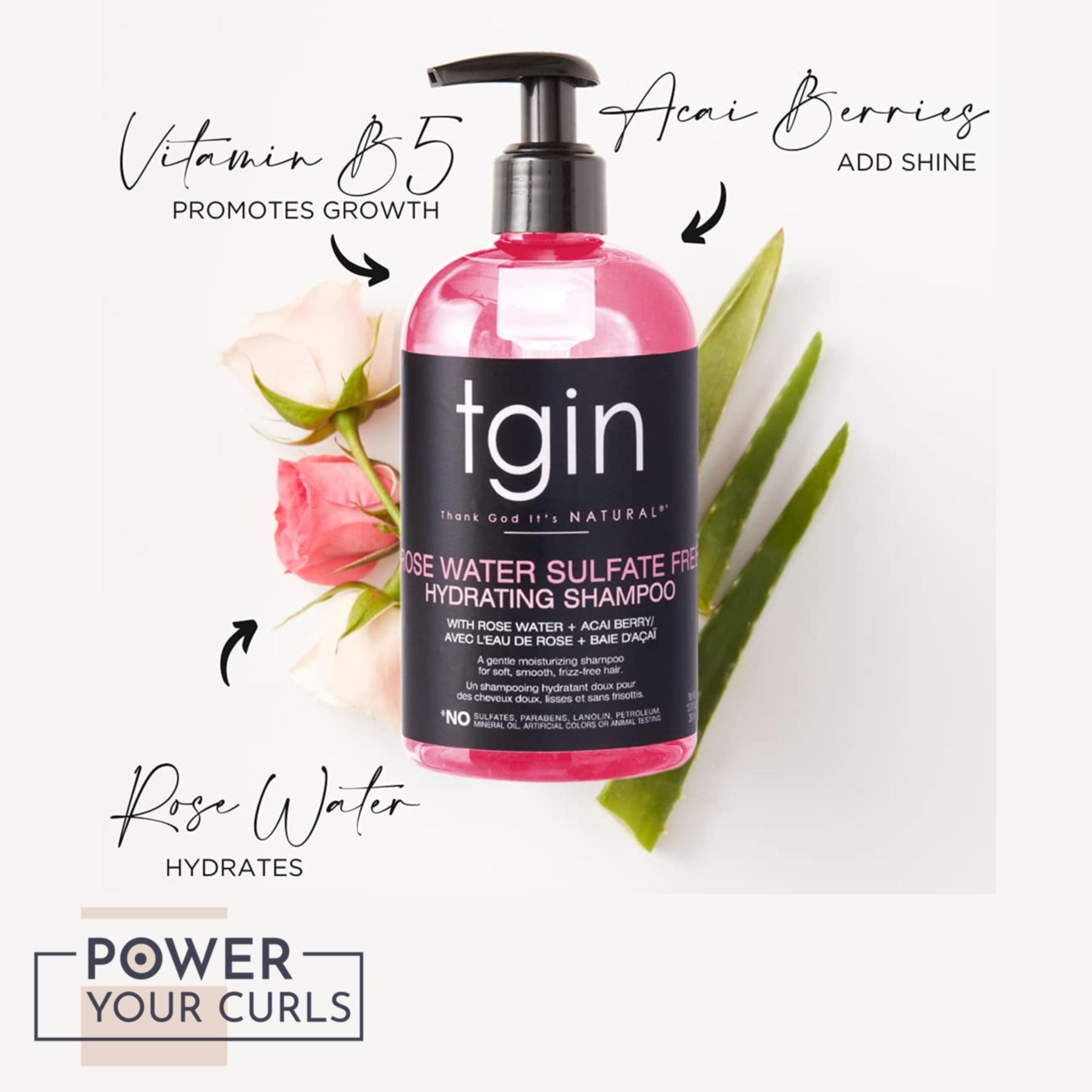 tgin’s Rose Water Sulfate-Free Hydrating Shampoo gently cleanses hair, leaving it moisturized without a greasy finish.