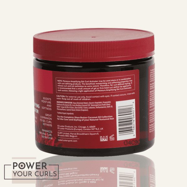 Luster’s Pink Shea Butter Coconut Oil Gel Curl Activator is designed to enhance and define curls. Applied alone or in combination with other curl-defining products, it helps to amplify moisture and soften hair, providing up to 80% curl definition. The light, non-sticky formula helps to define coils while protecting against heat and humidity.