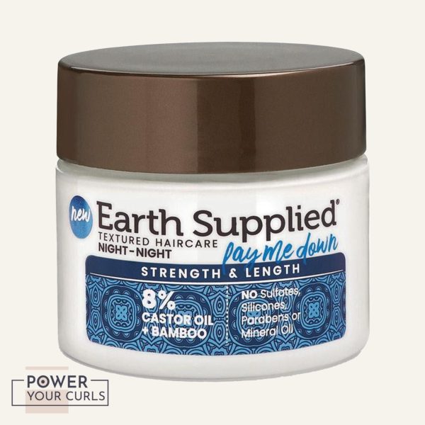 Earth Supplied Strength & Length Night-Night Lay Me Down is made with 8% Castor Oil + Chinese Bamboo to help fortify strands with moisture and improve elasticity so hair can grow long and strong.