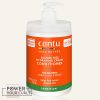 Apply a generous amount to ends and work toward the root. Rinse thoroughly with cool water. For best results, use in conjunction with Cantu Cleansing Cream Shampoo.