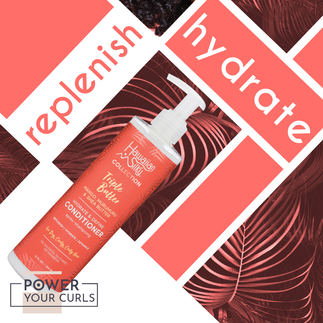 Give your hair superior nourishment with Triple Butter Hydrate & Define Conditioner. Our moisture-rich formula quenches parched strands and replenishes dry, brittle curls. This moisturizing conditioner detangles tresses and locks in moisture without weighing your hair down. Leave your hair feeling refreshed and protected. Great for all hair types.